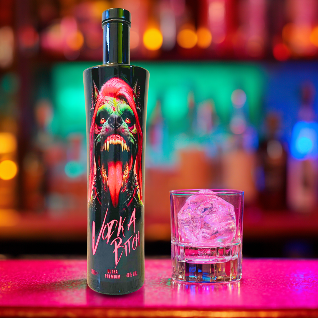 VODKA BITCH Ultra Premium Vodka doesn’t play by the rules — it rewrites them. Distilled in England from the finest grain, this small-batch vodka is crystal-clean on the nose, silky on the palate, with a touch of sweetness and a crisp, refreshing finish.