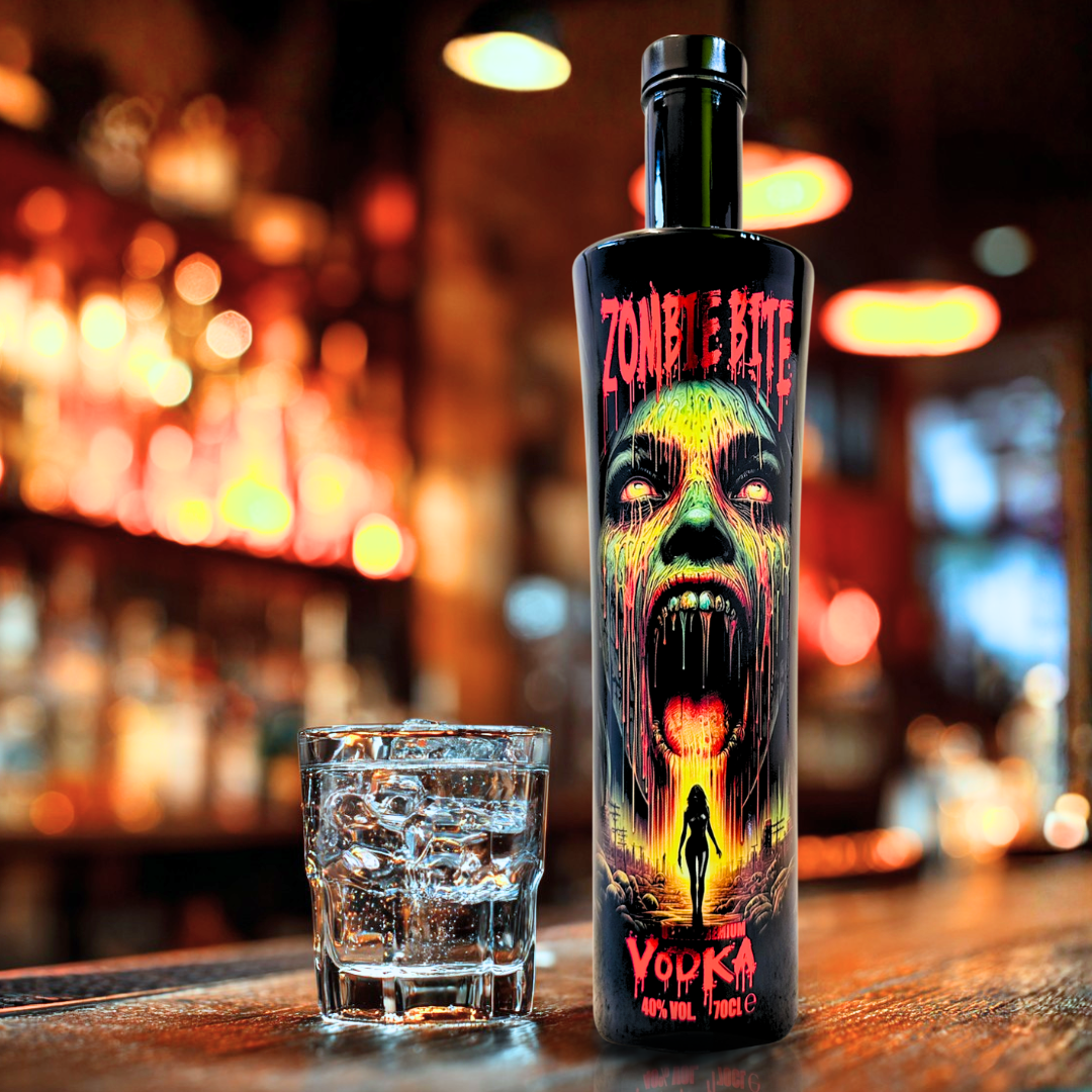 ZOMBIE BITE Ultra Premium Vodka (40% ABV, 70cl) – ultra-smooth, clean, and bold. Small-batch English vodka with serious bite. Only 400 bottles made.
